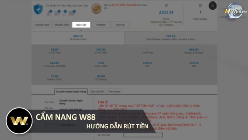[W88] HƯỚNG DẪN RÚT TIỀN W88 THÀNH CÔNG 100% – RÚT TIỀN ĐA KÊNH – VỀ NGAY SAU 3 PHÚT